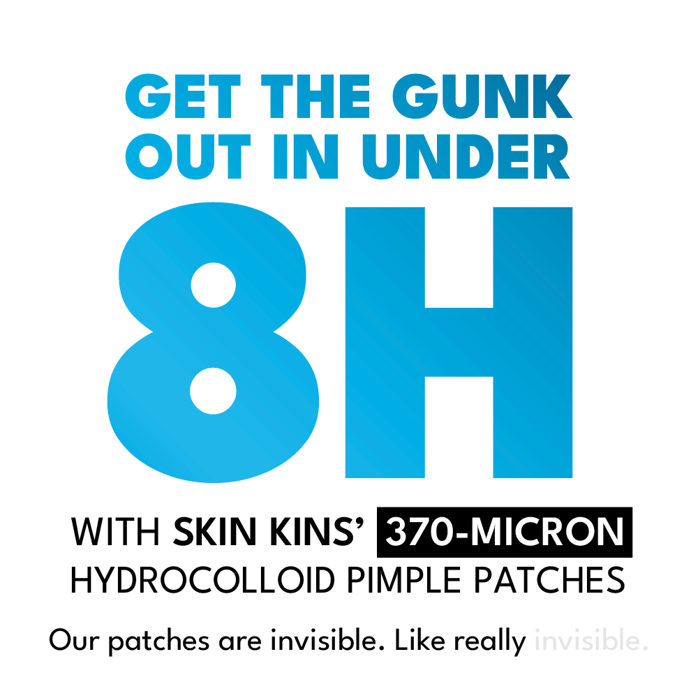 Skin Kins' Hydrocolloid Pimple Patches get the gunk out in under 8 hours. At just 370 microns, they're guaranteed to be invisible.